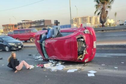 Vuelca vehículo en la lateral de la carretera 57, cerca de La Comer Estadio