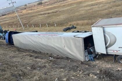 Vuelca tráiler en acceso a la comunidad de Calamanda, en El Marqués