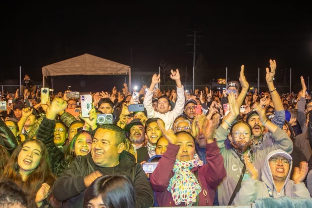 A pesar del clima frío que se registró durante la tarde-noche, cientos de familias permanecieron en el lugar, coreando y disfrutando de los temas más emblemáticos de la banda, en un ambiente cargado de energía.