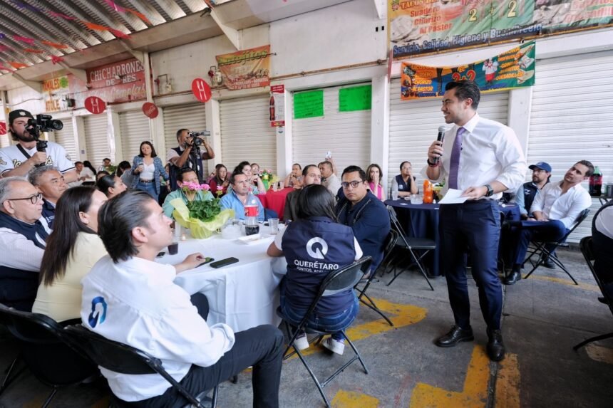 Querétaro, Qro.- El presidente municipal de Querétaro, Felifer Macías, refrendó su compromiso de apoyar a los comerciantes del Mercado 4 de Marzo y anunció que, antes de que concluya el año, la totalidad de las y los locatarios accederá a algún programa municipal orientado al fortalecimiento de su actividad, así como a apoyos sociales para ellos y sus familias, con el objetivo de contribuir a mejorar su calidad de vida.