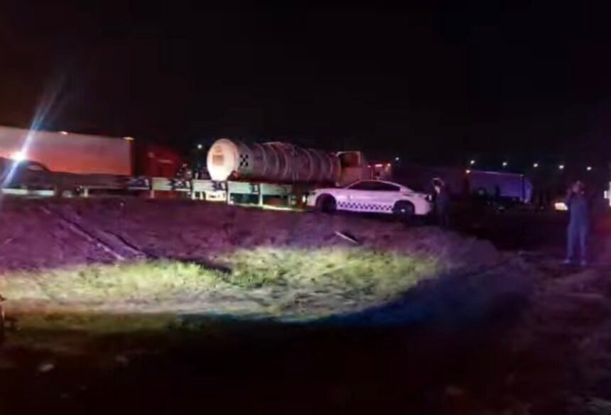 San Juan del Río, Qro.– La noche de este jueves se desplegó un fuerte operativo de seguridad sobre la carretera federal 57, a la altura de la zona conocida como El Trébol, donde autoridades aseguraron un tractocamión acoplado a una pipa cargada con presunto combustible de procedencia ilícita.