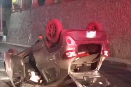 Vuelca auto en laterales de la carretera 57 y avenida Cimatario