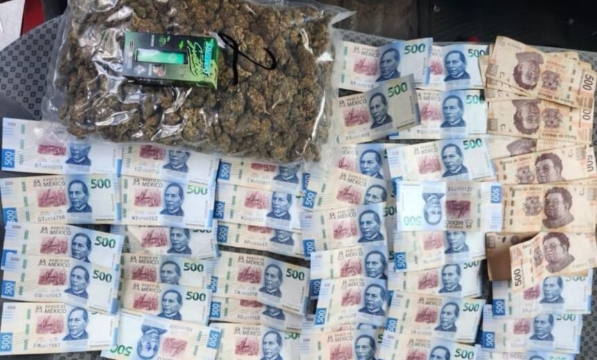 Durante la intervención, los oficiales realizaron la inspección de un vehículo en el que viajaban los señalados, donde localizaron hierba verde seca con características similares a la marihuana, así como dinero en efectivo.