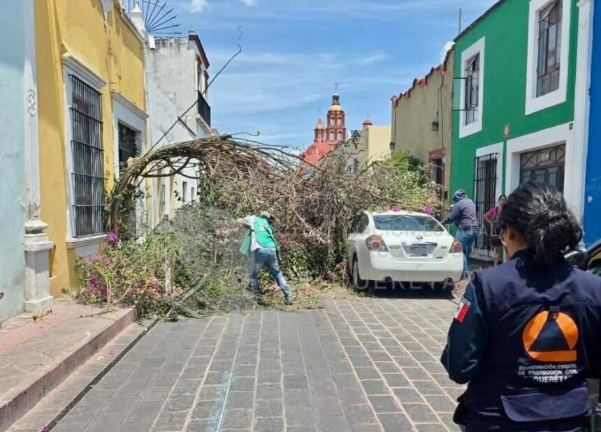 Querétaro, Qro.- La tarde de este miércoles, cuerpos de emergencia atendieron la caída de un árbol sobre la vía pública en la calle Pino Suárez, lo que generó afectaciones a la circulación vehicular.
