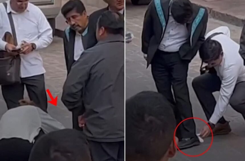 Las imágenes muestran al ministro siendo atendido por dos de sus colaboradores, quienes se agacharon entre los asistentes para lustrar su calzado, mientras él permanecía de pie y observaba la acción sin intervenir. El momento, considerado inusual por la audiencia, desvió la atención del evento protocolario y rápidamente se viralizó en plataformas digitales.