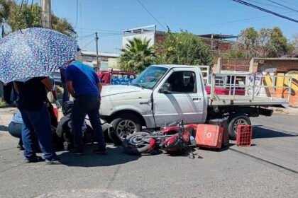 Choque entre camioneta y motocicleta afecta circulación en Lomas de Casa Blanca