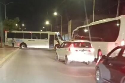 Pipa saca del camino a transporte de personal en la carretera a San Luis