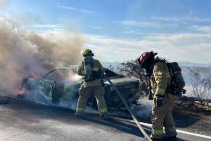 Cortocircuito provoca incendio de vehículo en el Anillo Vial Fray Junípero Serra