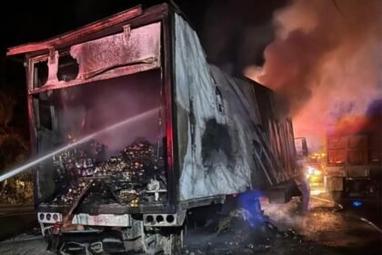 Un camión cargado con abarrotes se incendió en Cuesta de Huatmazontla; no…