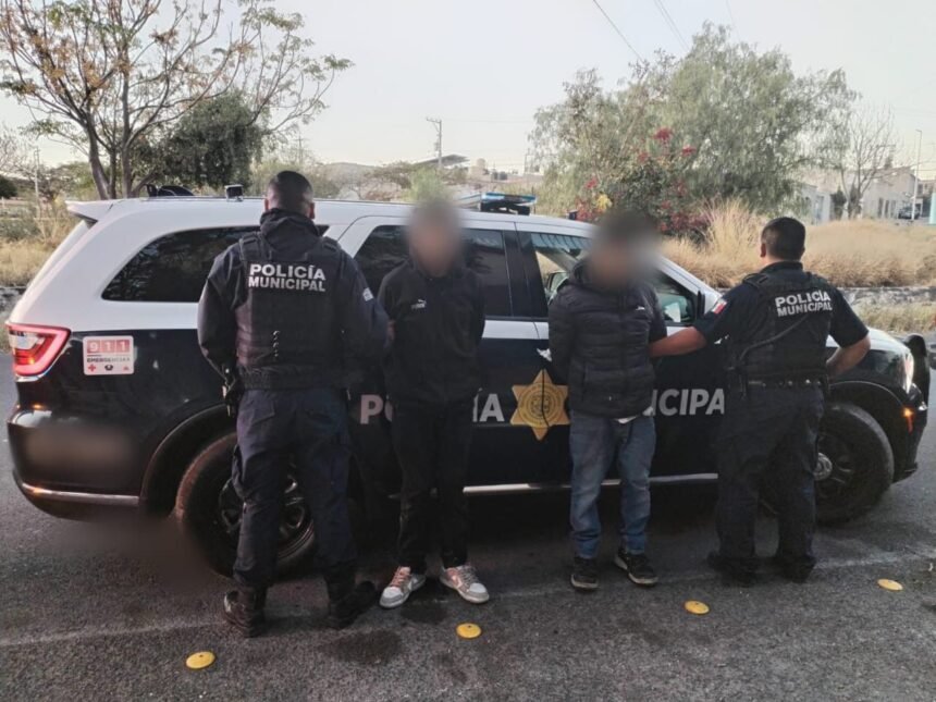 Querétaro, Qro.– Elementos de la Secretaría de Seguridad Pública Municipal de Querétaro (SSPMQ) detuvieron a dos masculinos por su probable participación en el delito de robo de vehículo, luego de atender un reporte ciudadano en el que las personas afectadas informaron que minutos antes les habían sustraído su camioneta, la cual fue posteriormente localizada abandonada en las inmediaciones de la colonia Vista Azul.