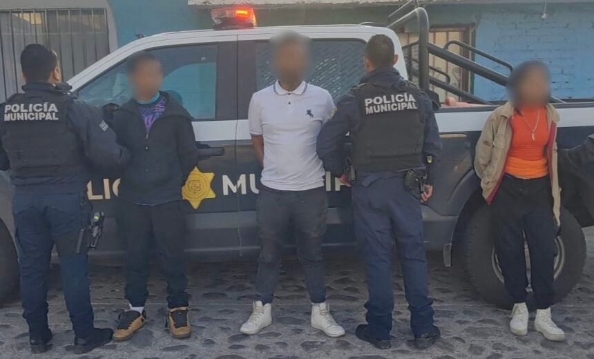 Querétaro, Qro.- Elementos de la Secretaría de Seguridad Pública Municipal de Querétaro (SSPMQ) detuvieron a dos hombres y una mujer en la colonia San Pedrito Peñuelas, tras ser señalados como presuntos responsables de un robo a transeúnte.