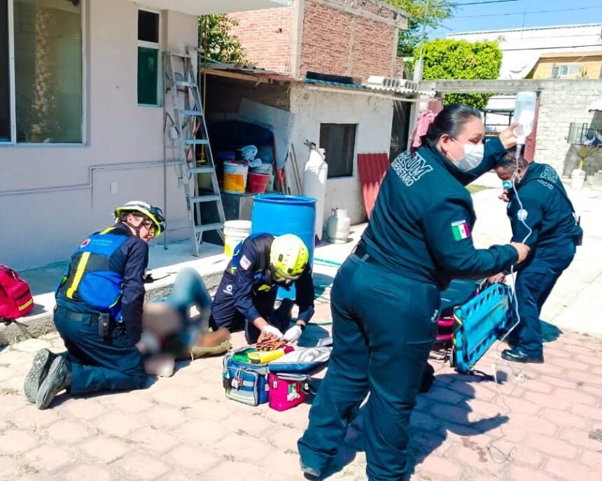 Querétaro, Qro.— La mañana de este martes, cuerpos de emergencia atendieron el reporte de un hombre que cayó mientras realizaba trabajos en la azotea de un domicilio en la Colonia 5 de Febrero.