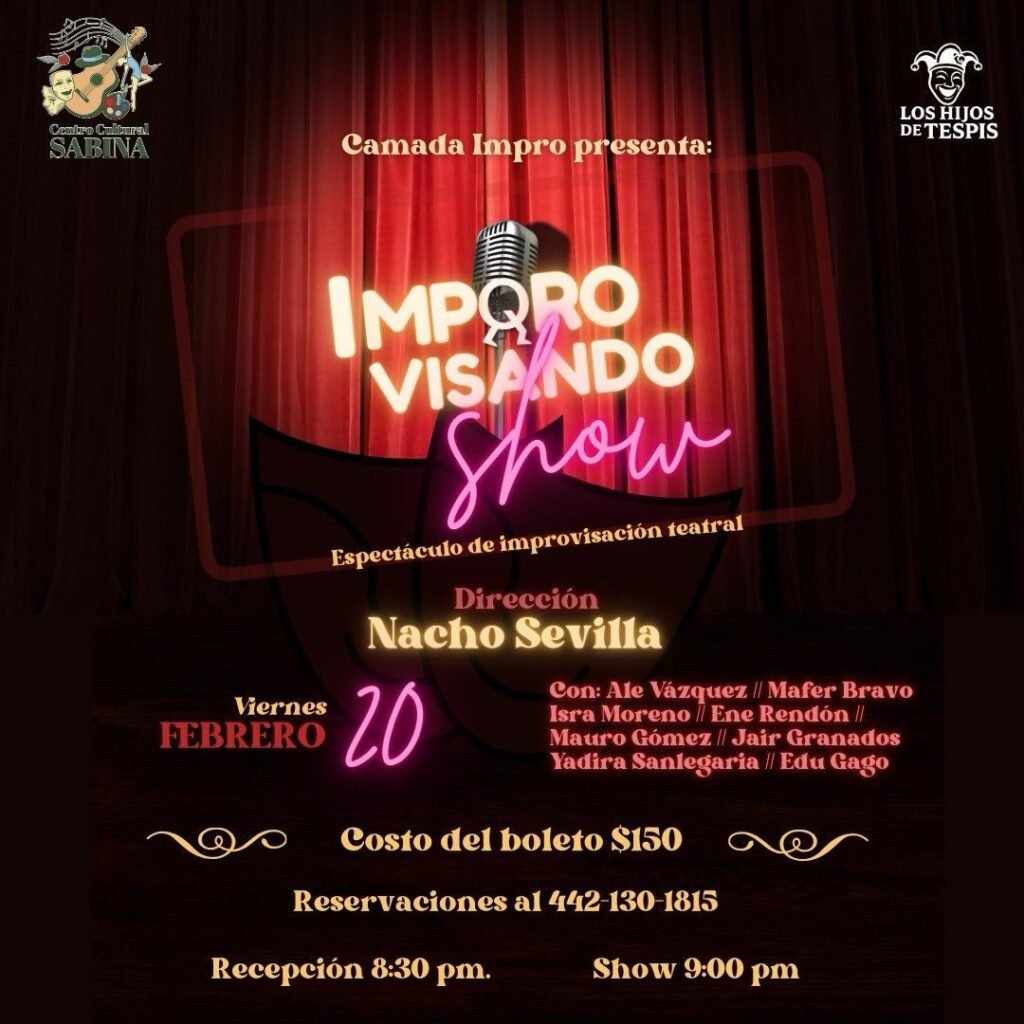 Los boletos pueden adquirirse vía WhatsApp al 442 130 18 15. Con esta programación, Los Hijos de Tespis reafirma su vocación como un espacio donde el teatro incomoda, provoca y genera preguntas a partir de la risa y la experiencia compartida.