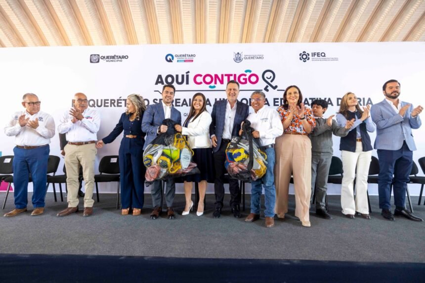 Durante el acto cívico, donde se rindieron honores a la bandera, y tras exaltar que en Querétaro se realiza una obra educativa diaria, el mandatario distribuyó kits deportivos a las y los estudiantes de los planteles, donde se reconstruyeron espacios completos, con aulas nuevas, que representan áreas dignas, servicios adecuados y condiciones que permiten un mejor desempeño escolar.