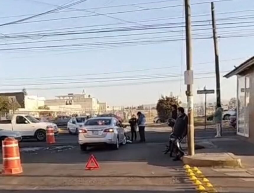 Querétaro, Qro.- Un motociclista fue atropellado por un automóvil tipo sedán cuando ambos circulaban a alta velocidad sobre Prolongación Bernardo Quintana esquina con calle Cangrejo, en dirección a avenida Revolución, a la altura de la colonia La Luna, en la ciudad de Querétaro.