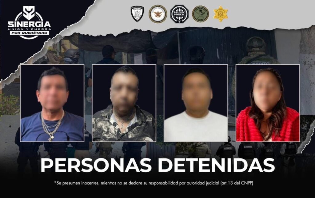 Las diligencias fueron encabezadas por personal ministerial y elementos de la Policía de Investigación del Delito, en coordinación con la Guardia Nacional, el Ejército Mexicano, la Policía Estatal de Querétaro y la Policía Municipal de Querétaro, quienes desplegaron un operativo conjunto para intervenir los inmuebles señalados en la investigación.