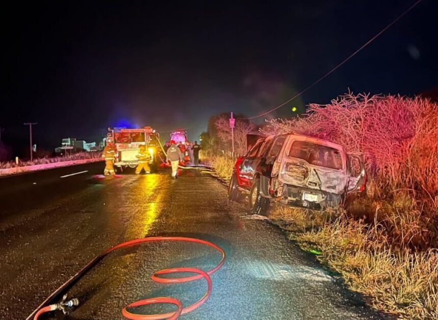 Cadereyta de Montes, Qro.– La noche de este martes se registró el incendio de una camioneta tipo Jeep Grand Cherokee cuando circulaba sobre la carretera federal 120, en el tramo San Juan del Río–Xilitla, dentro del municipio de Cadereyta de Montes.