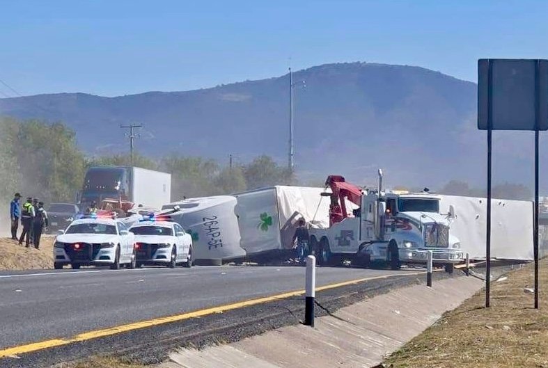 El pesado vehículo quedó recostado sobre uno de sus costados, lo que generó afectaciones a la circulación en esta importante vía federal. De manera preliminar, se informó que el incidente se originó desde la zona del Parque Industrial Querétaro.