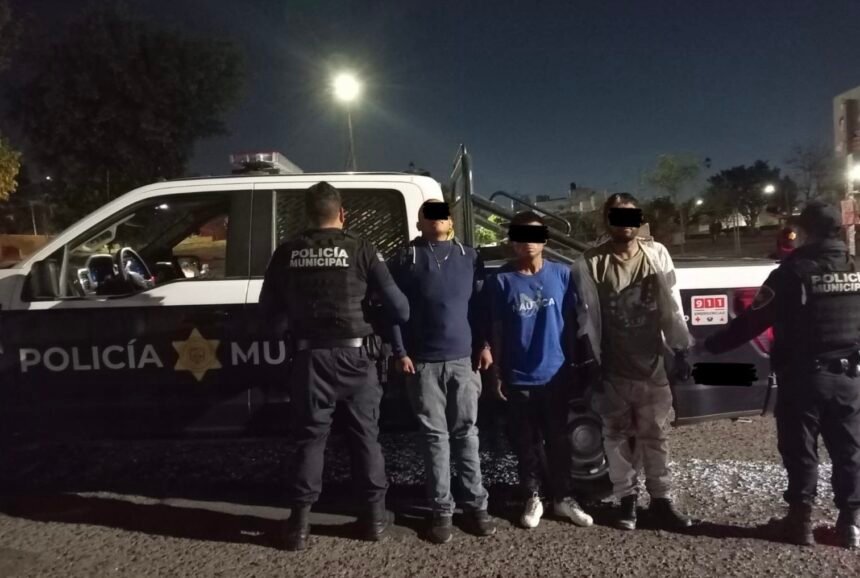 Querétaro, Qro.- Tres hombres fueron detenidos por elementos de la Secretaría de Seguridad Pública Municipal de Querétaro (SSPMQ) por su presunta participación en un intento de robo a vehículo en la colonia Villas de Santiago.