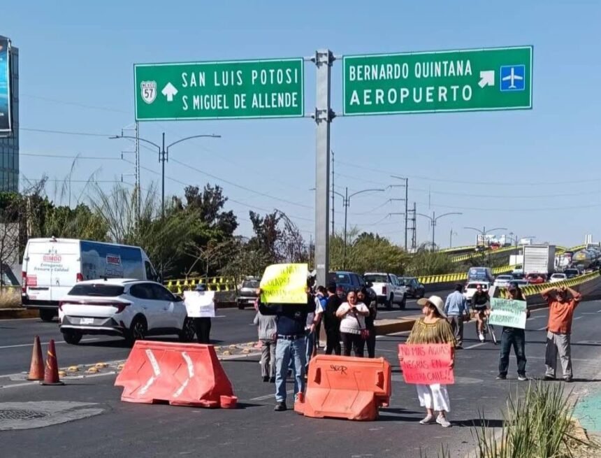 Querétaro, Qro.- La tarde de este lunes, vecinos de la colonia San Pablo bloquearon los carriles laterales de Paseo 5 de Febrero y los accesos a la colonia, en protesta por una fuga de drenaje que, denuncian, permanece varios días sin atención.